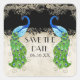Art Deco Style Peacock Black Save the Date Siegel Quadratischer Aufkleber