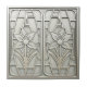 This elegant design moves slightly from pure abstraction to incorporate a stylized floral motif, reminiscent of classic Art Deco and later Mid-Century Modern sensibilities. The composition features two symmetrical lilies framed by strong, rectilinear and arched metal-look structures. Set in a neutrals color palette, the detailed silver-tone lilies and framework create a sophisticated, high-relief effect. This piece is ideal for adding a touch of timeless, structured elegance to any tile display or accent area. Search ID1196 to see other designs in this series. Note: design adapted from generative content.