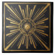 Illuminate your space with the captivating allure of this Art Deco sunburst. The design showcases a central, embossed-like golden sun encircled by sharp, angular geometric shapes and emanating rays, all set against a textured black background. This striking contrast of opulent gold and dark, moody black captures the essence of the Art Deco era, exuding sophistication and vintage appeal. It's a bold statement piece that adds a touch of classic elegance and artistic flair to any wall, embodying a timeless aesthetic for the modern home.