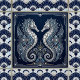 Art Deco Two Seahorses Mother of Pearl Blue Fliese