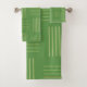 Dieses Handtuch-Set hat ein Deko-Design, das wie ein Gewebe in zwei Farbtönen grün auf einem Feld von Grün aussieht.