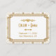 Diese Platzkarten sind mit einer weißen und goldenen Farbpalette, einem geometrischen Rahmen, geometrischen Mustern und anderen stilistischen Details inspiriert, die alle durch Art Deco und die rauschenden Zwanziger Jahre. Sie können die Textfelder des Beispiels nach Ihren Wünschen anpassen.