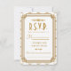 Diese UAWG-Antwortkarten sind mit einer weißen und goldenen Farbpalette, einem geometrischen Rahmen, geometrischen Mustern und anderen stilistischen Details ausgestattet, die alle durch Art Deco und die rauschenden Zwanziger inspiriert sind. Sie können die Textfelder des Beispiels nach Ihren Wünschen anpassen.