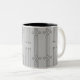 Diese Tasse hat ein Art Deko-Design von vertikalen Linien mit Diamanten und Kreise in Silber auf einem Feld von grau.