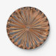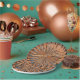 Hübsche Kunst Deko Glas Blume Medaillon in riesziertem Kupfer, Silber und Blau auf einem schwarzen Hintergrund. Hat eine auffallende metallische Wirkung. Schön für ein elegantes Herbstfest.