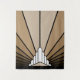 Ein klassisches Deko-Solo-Muster, das in Bräune gehalten ist. Ein ikonisches Sonnenbild, das hinter einem stilisierten Deko aus dem Gebäude aufgeht. Ein schlichtes und dennoch elegantes Design, das der Zeit entspricht
