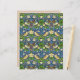 Papier in einem William Morris Art Nouveau Wandteppich aus stilisierten Vögeln, Blume, Erdbeeren und Blätter in sanften Blautönen, Grün, Beige und Bräune auf dunkelblauem indigoblauem Hintergrund