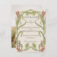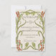Romantisches Design mit einem Jugendstil-Blumenrahmen, in den Farbtönen von Sonnenuntergang Orange mit gedämpften Grüntönen auf dem Hintergrund von Vintagem Papier. Elegante, raffinierte Vintage Schriftart vervollständigen das zeitlose und elegante Aussehen.