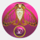 ART NOUVEAU MOTH FRAU PINK FUCHSIA GEM MONOGRAM RUNDER AUFKLEBER