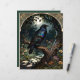 A raven with fantastic, irridescent feathers perches in a gnarled tree under a full moon. An art nouveau arch frames the scene. The back is plain dark green, without an image or texture. Beautiful, Gothic image.