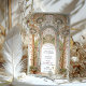 Diese exquisite Hochzeitseinladung besticht durch einen bezaubernden Art Nouveau inspirierten Blumenbogen mit aufwändigen Schmiedeeisentüren. Die zarten Pastellfarben weicher Pinke, Blues und Gold harmonieren nahtlos mit Bio Blumenmustern und schaffen eine romantische Ästhetik. Inspiriert durch die Vintage europäische Architektur, ist diese Einladung perfekt für Paare, die ein anspruchsvolles, naturlich inspiriertes Hochzeitsthema suchen. Die raffinierte Typografie ergänzt die fließenden, dekorativen Elemente und macht sie zu einer zeitlosen und luxuriösen Wahl für elegante Hochzeiten, Gartenzeremonien und Feierlichkeiten zum Ziel.