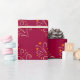 Elegantes Weihnachtspapier mit einer künstlerischen Weihnachtsbaumgrafik auf einem Maronhintergrund.