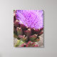 Diese 16" X 20" gedehnte Leinwand verfügt über ein nahes Foto einer Artichoke Pflanze, Colorado Star. Die Pflanze hat silbrig-grüne Blätter und sie ist offen, um zu zeigen, dass es eine reife, kuppelförmige Blume ist, die schöne lila Dicken hat.