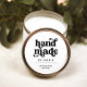 Ces étiquettes d'emballage de petite entreprise, en noir et blanc, à la mode, présentent une typographie rétro noire, sur un simple arrière - plan blanc. Le texte dit "fait main", et il y a de la place pour votre nom ou votre nom de société, et le nom de votre produit. Un look à la fois professionnel et élégant, parfait pour n'importe quel type de produit, comme les bougies, les vêtements, l'artisanat et la céramique.