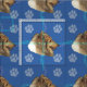 Eine künstlerische Skizze des Kopfes einer glücklichen Rough Collie mit einem blauen Hintergrund mit Pfotendrucken und Spuren in Grautönen, Rosa und Blau. Design von Diane Blackman. Das gleiche Design ist auch bei anderen lustigen Hundebildern erhältlich.
