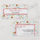 Cartes de visite avec un motif à thème d'art et d'artisanat. Le design se compose d'une boule de fil avec aiguilles de tricot, boutons, ciseaux, une bouteille de parties scintillant, une bouteille de colle, ruban, et un pistolet à colle chaude. Le design a une palette de couleurs rétro orange, jaune, rouge et bleu/turquoise.