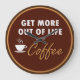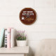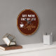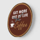 Artsy coffee themed wall decor clock created with a humorous saying in a retro design and earth tone color scheme. Designed as a funny kitchen decor clock.