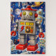 Embark on a journey through the stars with this vibrant galactic robot exploration design set against a deep shimmering nebula filled with twinkling stars and drifting golden asteroids. This artwork features a charming squad of retro style 10 robots the central character with its bold red lightning bolt and bright yellow eyes stands out in high definition detail accompanied by its mechanical companions in classic silver and Forest Green the playful sticker style white outlines around the robot robots give the piece of modern Pop art feel while the cosmic backdrop adds a sense of infinite wonder it's a perfect blend