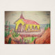 Eine Aquarellstift-Skizze und Malerei der Alto Vista Kapelle in Aruba mit Karibischem Meer und verschiedenen Kakteen, Felsen und dornigen Sträuchern.