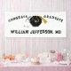 Creative Medical School Graduation Party Glückwünsche Banner für Doktorgrad mit Doktorgrad, Gold Tassel und Stethoskop. Zum Personalisieren bearbeiten Sie Text, um Namen hinzuzufügen.