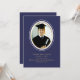 Mit dieser Navy Blue Card kündigen Sie seinen Abschluss von der Medical School an. Das Foto des Absolventen ist mit einer Gold-, Navy- und White-Grenze gerahmt. Auf der Rückseite befindet sich ein Goldkadukus. Sie können alles personalisieren - Bild, Name und alle Details.