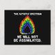 Le spectre autistique : Nous ne serons pas assimilés. Avec logo de flamme arc-en-ciel.