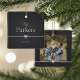 Der süße und einfache Weihnachtsschmuck zeichnet sich durch eine minimalistische Gestaltung aus, mit Ihrem Familiennamen und dem Jahr in einer sauberen, klassischen Serifenschrift auf einem weichen schwarzen Hintergrund. Ein kleiner Bogen durch die Mitte vervollständigt das Design. Fügen Sie der Rückseite ein Foto hinzu, hervorgehoben mit einer passenden Bogen-Abbildung.