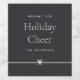 Beginnen Sie Ihre Weihnachtsgeschenke mit diesen süßen und einfachen Weihnachtsweinetiketten, die mit Ihrem bevorzugten Urlaubssegment und der Familienunterschrift (gezeigt mit "Wishing you Holiday Cheer") auf einem weichen schwarzen Hintergrund angepasst werden können. Ein kleiner Bogen am Boden rundet dieses elegante minimalistische Urlaubsdesign ab.