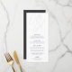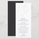 Eine schöne typografische Hochzeitsmenükarte mit Ihren Initialen in überdimensionaler Schriftzeichen oben, in Ton auf Tontönen für einen Wasserzeichen-Effekt. Personalisieren Sie Ihre Menüpunkte unten. Unsere Aschenfarben geben eine klassische Note mit weichem Schwarz und kaum dort graue Schriftzüge auf einem knackigen weißen Hintergrund.