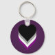 Basic Button Schlüsselanhänger mit Herz-Design in asexuellen Farben; rosa, gelb und blau Streifen Stolperflagge, Regenbogen-Liebe Design, auf lila Hintergrund