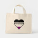 Tiny Tote with heart design in colors of asexuality; black, gray, white and purple, stripes pride flag, rainbow love design