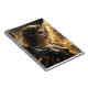 Schreib mit Feuer und Licht. Dieses Notebook-Cover zeigt einen wilden Krieger-Engel, der mit goldener Energie strahlt - Ihren persönlichen Wächter der Gedanken.