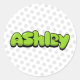Der Name Ashley in grünem Retro Comic Bublegum Stil Text.