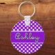 Niedlicher Schlüsselanhänger in kleinen weißen Punkten auf lila Hintergrund, auf dem der Name Ashley steht.