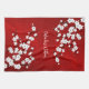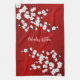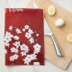 Hübsche Weißkirschblüten auf einem schimmernden roten Hintergrund. Dieses elegante, rote Blumenhandtuch verleiht Ihrer Küche ein leicht asiatisches Gefühl. Passen Sie es mit einem Namen an.