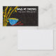 Geschickter Bambus, dekorative Schüssel- und Essstäbchen-Visitenkarte mit asiatischer oder chinesischer Art. Bambus des gelbes Gold 3 mit grünem Blätter, blauer dekorativer Nahrungsmittelschüssel und roten Essstäbchen auf einem dekorativen schwarzen Hintergrund.