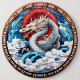 In Buntglas-Stil, asiatischer Drache, ein mythisches Tier, in Rot- und Blautönen.