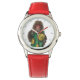 Kinderuhr aus Edelstahl mit rotem Lederarmband