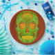 Mein Tag des Toten inspiriert Schädels feiert Leben und Tod mit einer Collage meiner Aphenblattgemälde und zeigt die hellen Grüntöne des Frühlings.