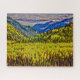 Ce grand puzzle présente des montagnes Rocheuses enneigées qui dominent des collines et des champs de peupliers rouges vifs. Il s'agit d'une version "peinte" d'une photo des Archives nationales avec peinture à l'huile et effets tonifiants HDR appliqués. Photo originale : Archives nationales no 412-DSP-2.