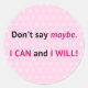 Assertive I KANN auf rosa und weiß zitieren Runder Aufkleber