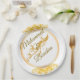 Ajoutez une touche de sophistication à votre jour spécial avec cette assiette de mariage magnifiquement conçue, personnalisée avec les noms Mohammed & Bouchra. Dotée d'un cadre ornemental doré luxueux et d'une typographie script élégante, cette assiette jetable est parfaite pour les réceptions de mariage, les fêtes de fiançailles ou les célébrations d'anniversaire. Un ajout raffiné et mémorable à tout décor de mariage classique.