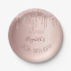 Une plaque en papier pour une fête de 30e anniversaire girly et glamour. Un faux rose à l'aspect métallique à l'arrière - plan avec un élégant faux rose parties scintillant doré gouttes, look goutte à goutte de peinture. Le texte : Le nom est écrit en or rose foncé avec un grand script de style à la main moderne. Modèle pour le nom, âge 30 et une date.