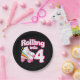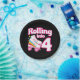 Ce design de fête de patinage est parfait pour une fête de patinage à rouleaux ou un thème d'anniversaire pour une fille de 4 ans. Si la fille d'anniversaire aime le roller skate, elle ADORE ce skate party design! Caractéristiques style rétro 'Rolling in 4' anniversaire citation avec roller cool graphique avec arc-en-ciel & étoiles qui est amusant et unique. Fun roller skate design pour le 4ème anniversaire d'une fille!
