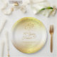 Célébrez un 50e anniversaire de mariage doré avec ces plaques de papier personnalisées de fête en or et blanc éditable avec une élégante conception de typographie de script de calligraphie de 50 ANS EN FOREVER accentué avec des coeurs dorés liés étroitement avec des initiales monogrammes et des confettis d'or contre un arrière - plan d'or métallique faux brossé. Contactez le concepteur via Zazzle Conversation ou makeitaboutyoustore@gmail.com si vous souhaitez modifier ce design, sur un autre produit ou pour coordonner des éléments.