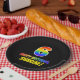 Cette conception amusante, colorée et joyeuse de plaque d'anniversaire comporte un grand nombre de "6" et le message "HAPPY BANTHDAY", tous deux ayant un dégradé de spectre arc-en-ciel coloré inspiré colorant motif, ainsi qu'un nom personnalisable jaune gras. L'arrière - plan est noir de couleur. Des plaques de papier amusantes et modifiables comme celle-ci pourraient être utilisées lors d’une fête d’anniversaire en l’honneur du 6e anniversaire de quelqu’un. [~Z0000488]