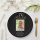 70 et Fabulous Black Elegant Script Photo 70th Birthday Plates. Faites vos propres plaques de papier de fête de 70e anniversaire pour elle. Customisez avec le nom et l'âge et insérez votre photo dans le modèle.