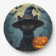 Assiettes En Carton Adorable Chat Noir Portant Sorcière Casquette