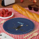 Un aigle à tête blanche scanne le ciel de sa perche sur une branche d'arbre; superposé sur un drapeau de l'Alaska. Le texte "Alaska" apparaît également en bleu et blanc brillant. Apportez-les pour votre pique-nique de la fête de l'Alaska.