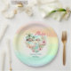 Plaques de papier de fête à thème hawaïen tropicale aux couleurs pastel, avec un coeur tropical avec vue sur la plage, des flamants roses et des fleurs avec un arrière - plan de couleur arc-en-ciel. Personnalisez facilement le texte. - Kate Eden Art